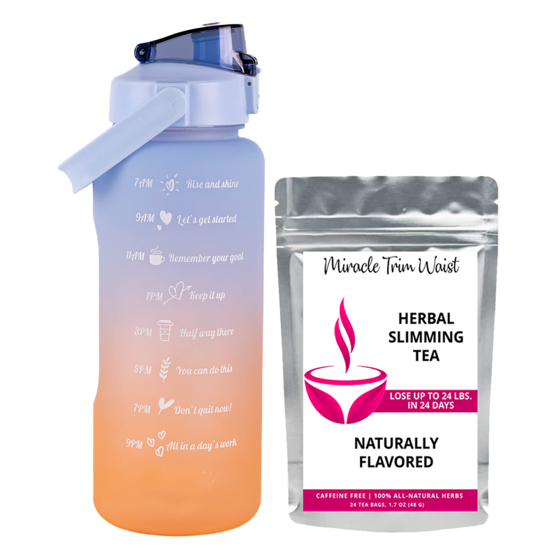 Includes: (1) 64oz Water Bottle, (1) 24 bags of Natural Slimming Tea