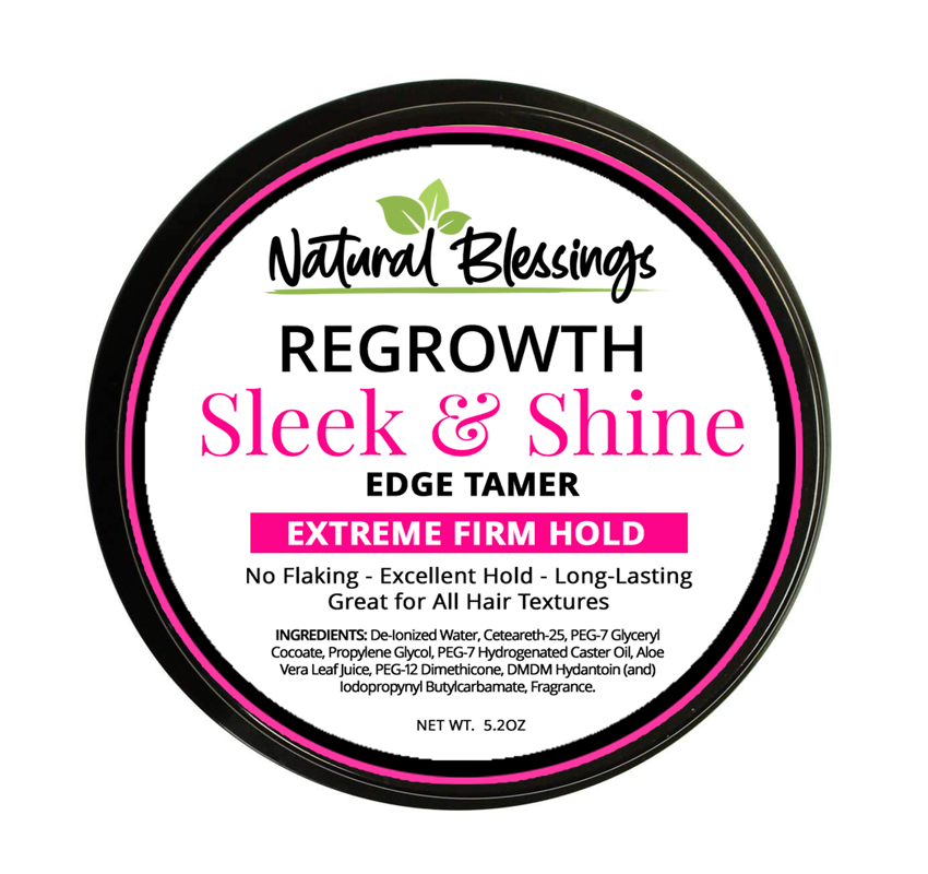 Regrowth Sleek & Shine Edge Tamer by Natural Blessings is infused with powerful natural ingredients and essential hair vitamins to nourish, strengthen, and promote healthy hair growth.