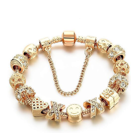 Each bracelet features 15 golden beads placed in a symmetrical pattern surrounding a golden smiley face charm in the center. Each charm adds something unique to the bracelet, creating a fun and magical quality when paired with the decorative patterns of the remaining gold charms. With so much style and personality, this bracelet is sure to impress and can be worn out and about as well as in professional environments, so purchase yours today from Miracle Hair.
