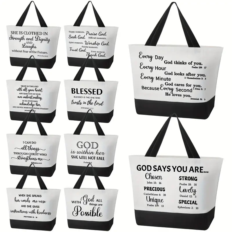 5pcs Christian Tote Bag - Set Of 5, Inspirational Bible Verse, Reusable Canvas, Bulk Library Book Bag, Grocery Shopping, Gifts for Women