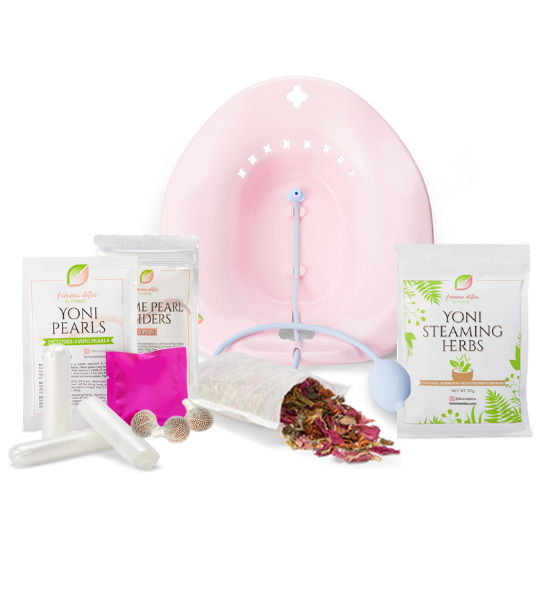 Includes: (1) Steaming Seat, (1) Yoni Pearls, (1) 3pk Glider, (1) Steaming Herbs
